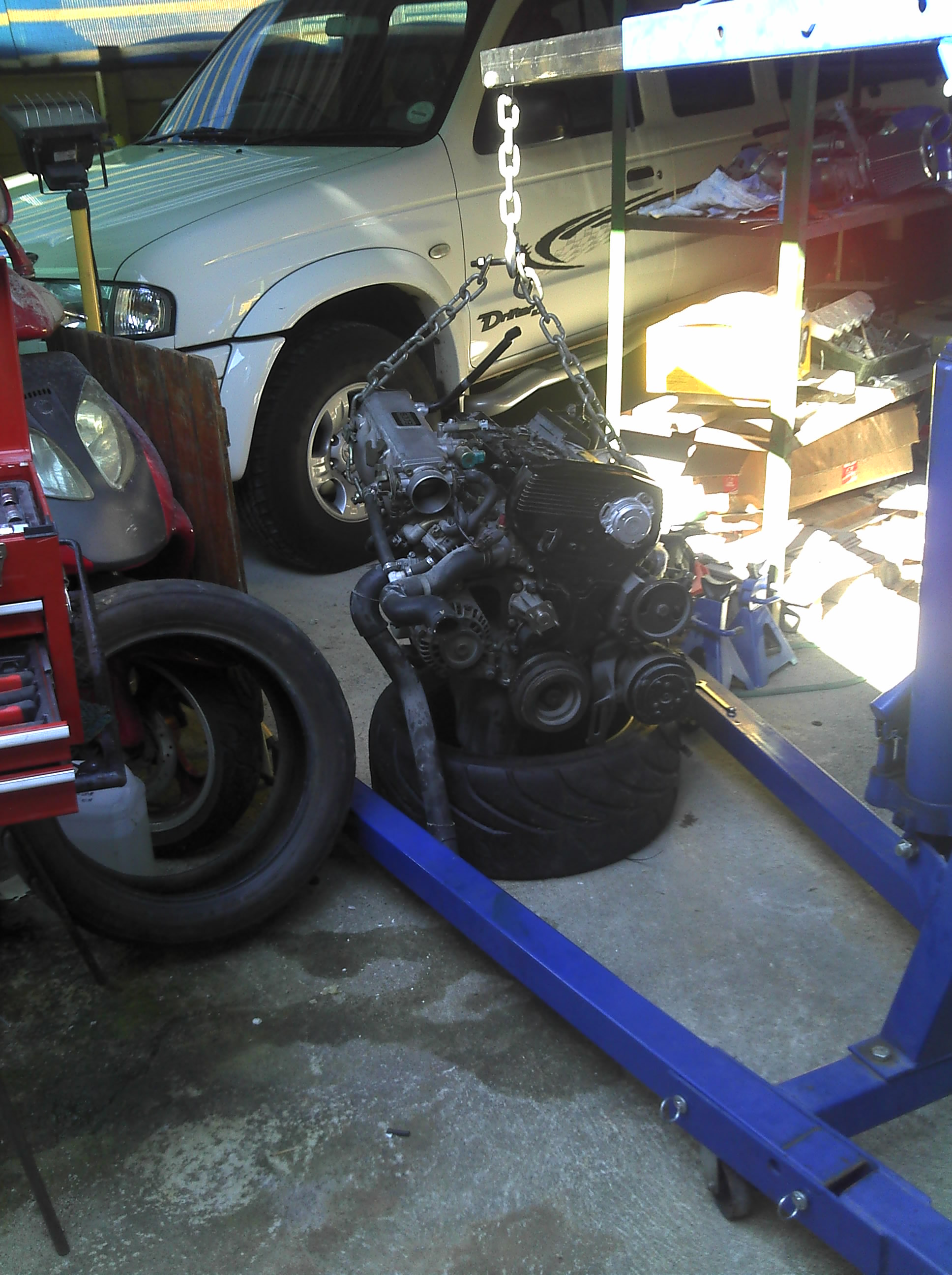 ok so new motor is in just need to bolt up the bellhousing put the radiator back connect all the wireing then she will live again
