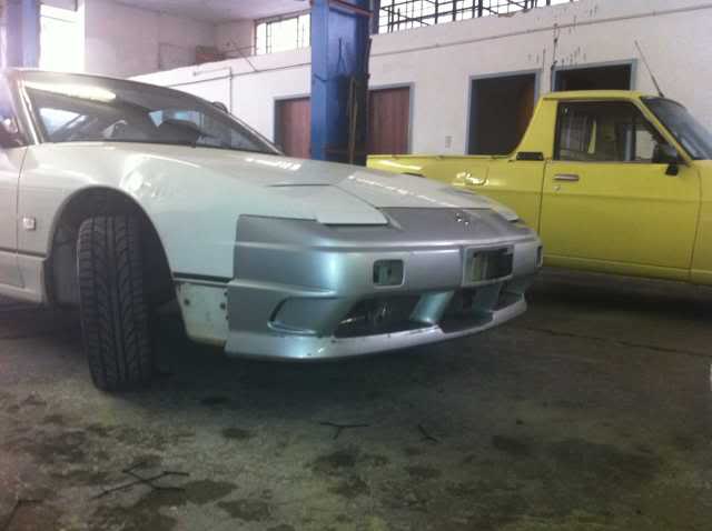 Front bumper has been taken away for plastic welding. As you can see, the portion where the numberplate goes, has a hole cut into it for better airflow. My intention is to get it back to stock.